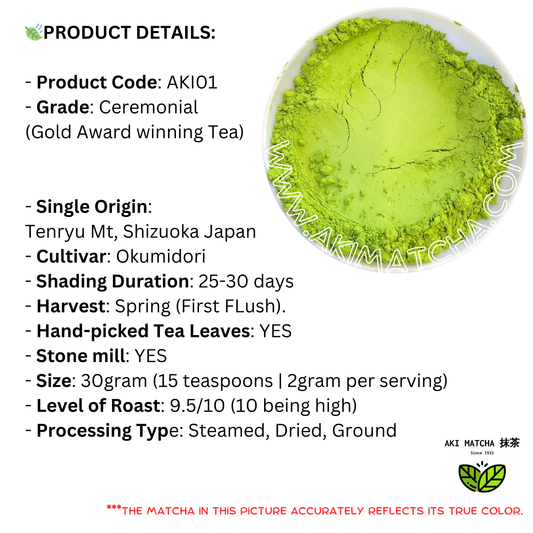 AKI MATCHA - Superior Matcha | Pure Japanese Matcha Tea Ceremonial Grade | First Harvest - Hand-picked tea | Size: 30g (15 teaspoons = 15 drinks)