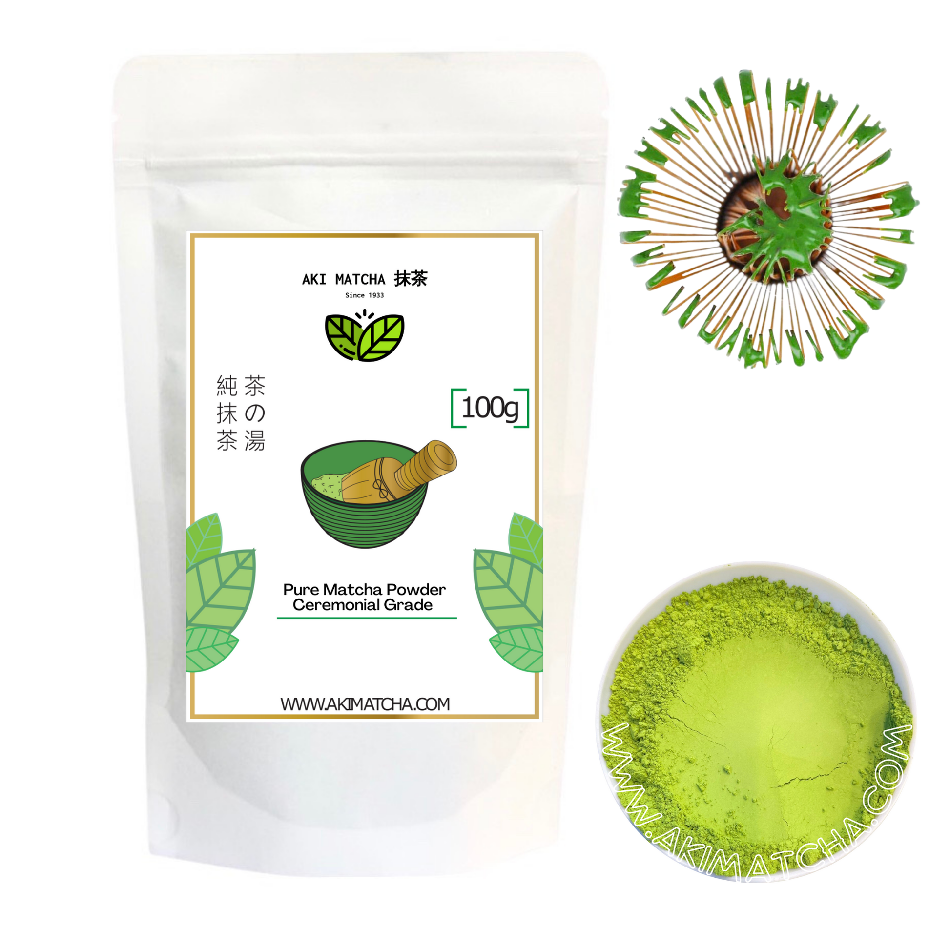 AKI MATCHA - Organic Matcha Green Tea Powder | Spring Harvest Ceremonial Grade Matcha - EGCG 40mg/1g Matcha | Size 100g (50 teaspoons = 50 drinks)